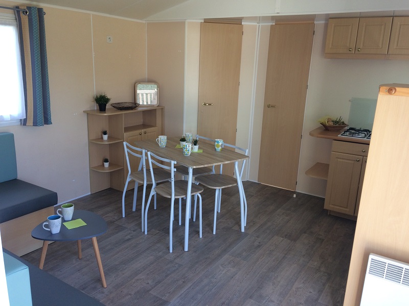 Le mobil-home est composé d'un salon spacieux, d'une cuisine, de 2 chambres avec grands placards, d'une grande salle d'eau et d'un wc séparé.