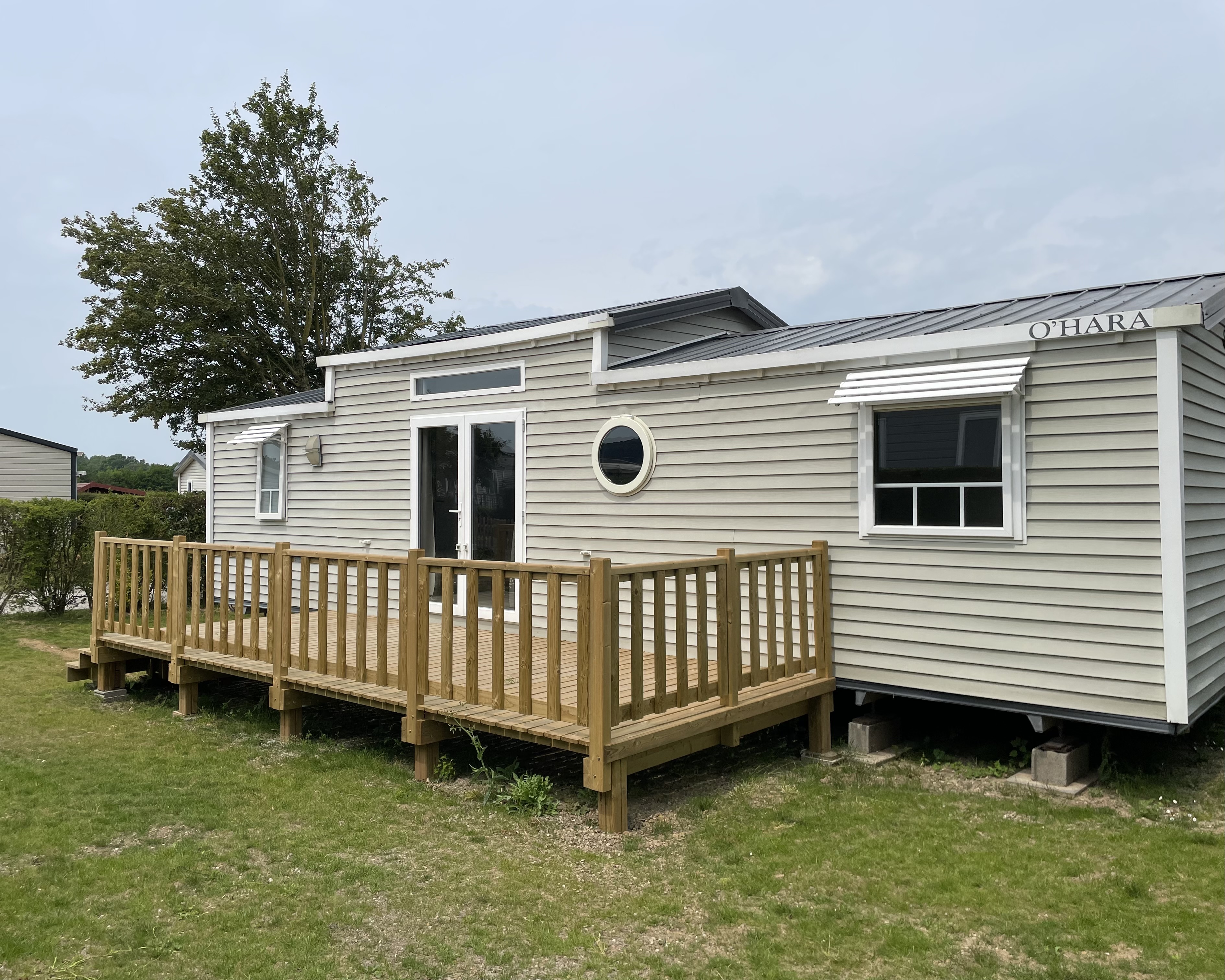 Le mobil-home est situé dans une très grande parcelle exposée SUD, terrasse en bois traité classe IV neuve (6m x 2.5m).